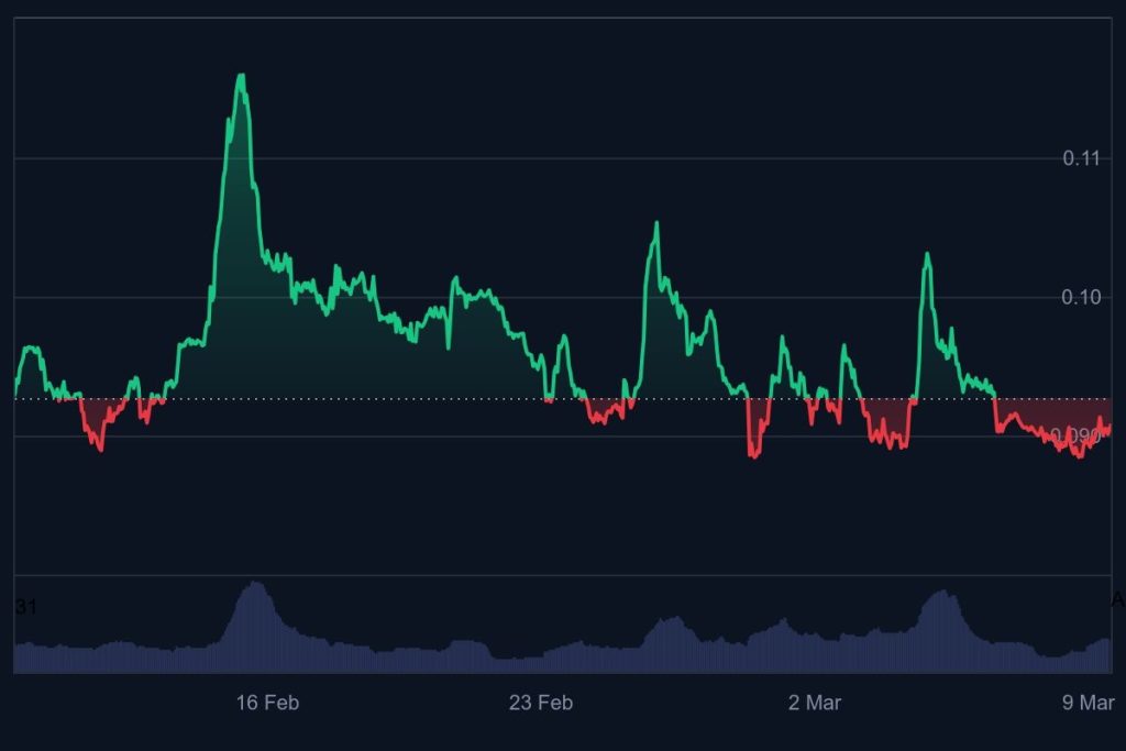 Dogecoin has slipped 6% over the past month. DOGE traded at $0.092 on February 15 but eased to $0.090 by March 9. Market data shows the price hovering near $0.09. This is an area that buyers have kept an eye on as short-term support.