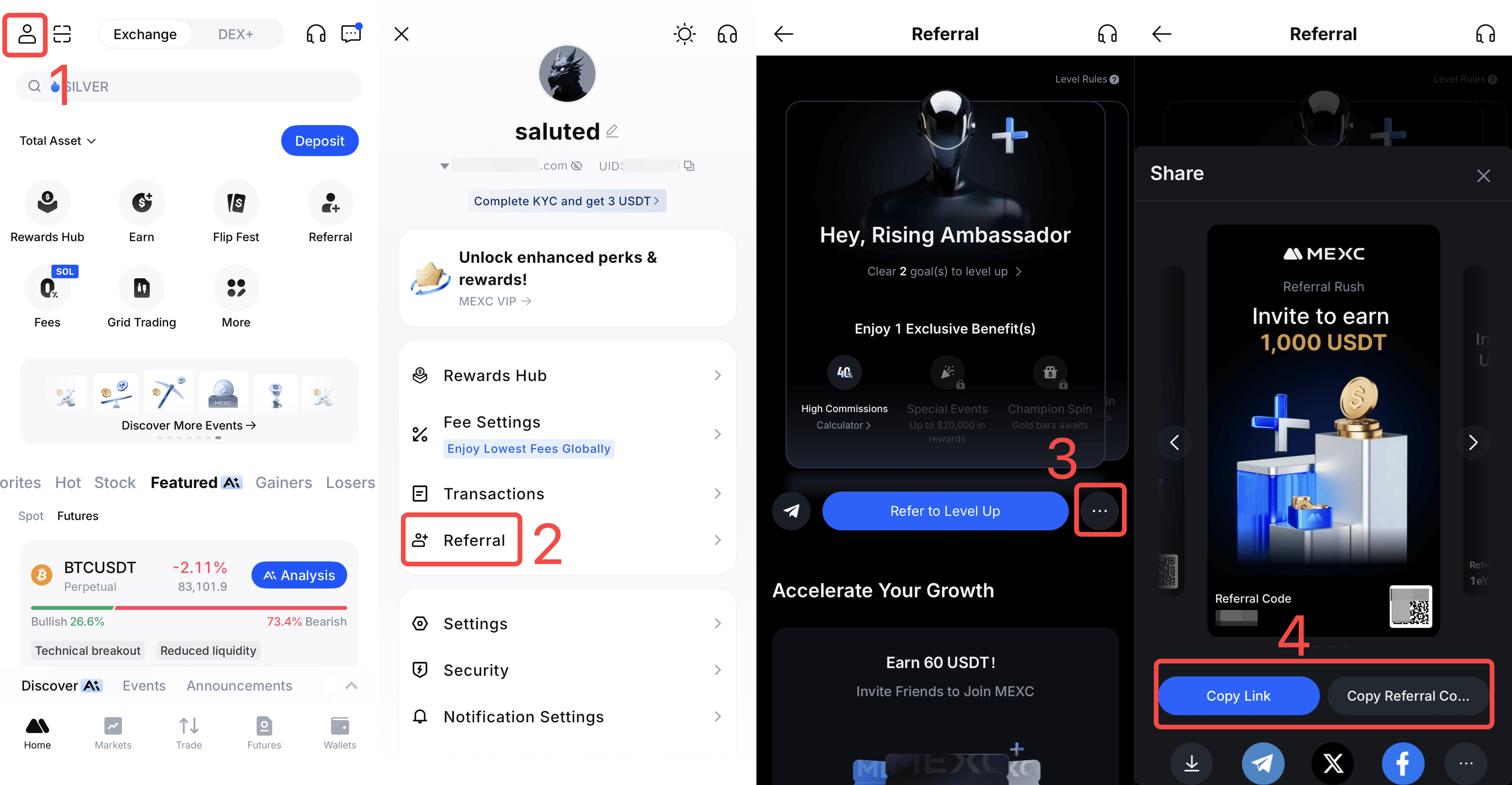 دعوت از دوستان برای ثبت‌ نام در MEXC
