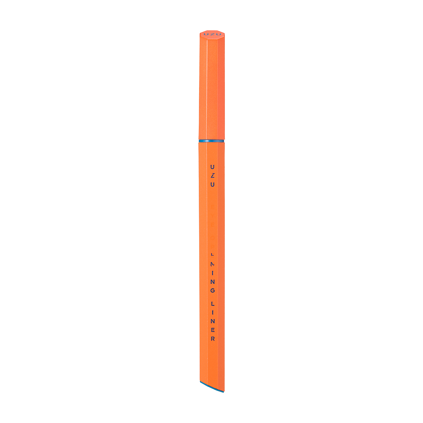 10色以上と豊富な色展開のUZU の「アイオープニングライナー」は、八角形の形状が特徴。お湯でオフができる肌へのやさしさもありながら、汗・皮脂に強いと謳っています。落ちにくさの検証では耐脂性はまったく落ちることはありませんでしたが、耐水性では若干色移りが見られたため、摩擦には注意が必要です。オフのしやすさもお湯オフタイプのためかアイメイクリムーバーもクレンジングオイルも落ちづらかったため、肌の摩擦も気になる点でしょう。使用感の検証では、モニターから「筆が非常に柔らかく、肌あたりいい」「太めの線も細めの線も描くことができる」とプラスの評価が挙がりました。一方で発色のよさの検証では、イエベ・ブルベどちらのモニターもしっかりとオレンジに発色しました。他のオレンジよりもフレッシュな明るさがあります。一方で肌なじみのよさの検証では、とくにブルベのモニターの仕上がりが肌から浮いているように見えてしまい、マイナスポイントでした。
