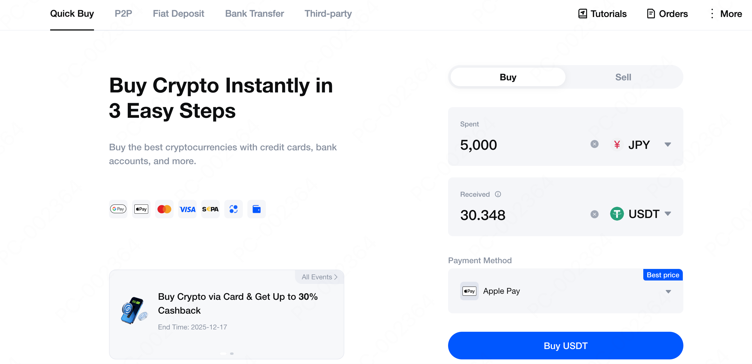 3. How to buy USDT on MEXC?