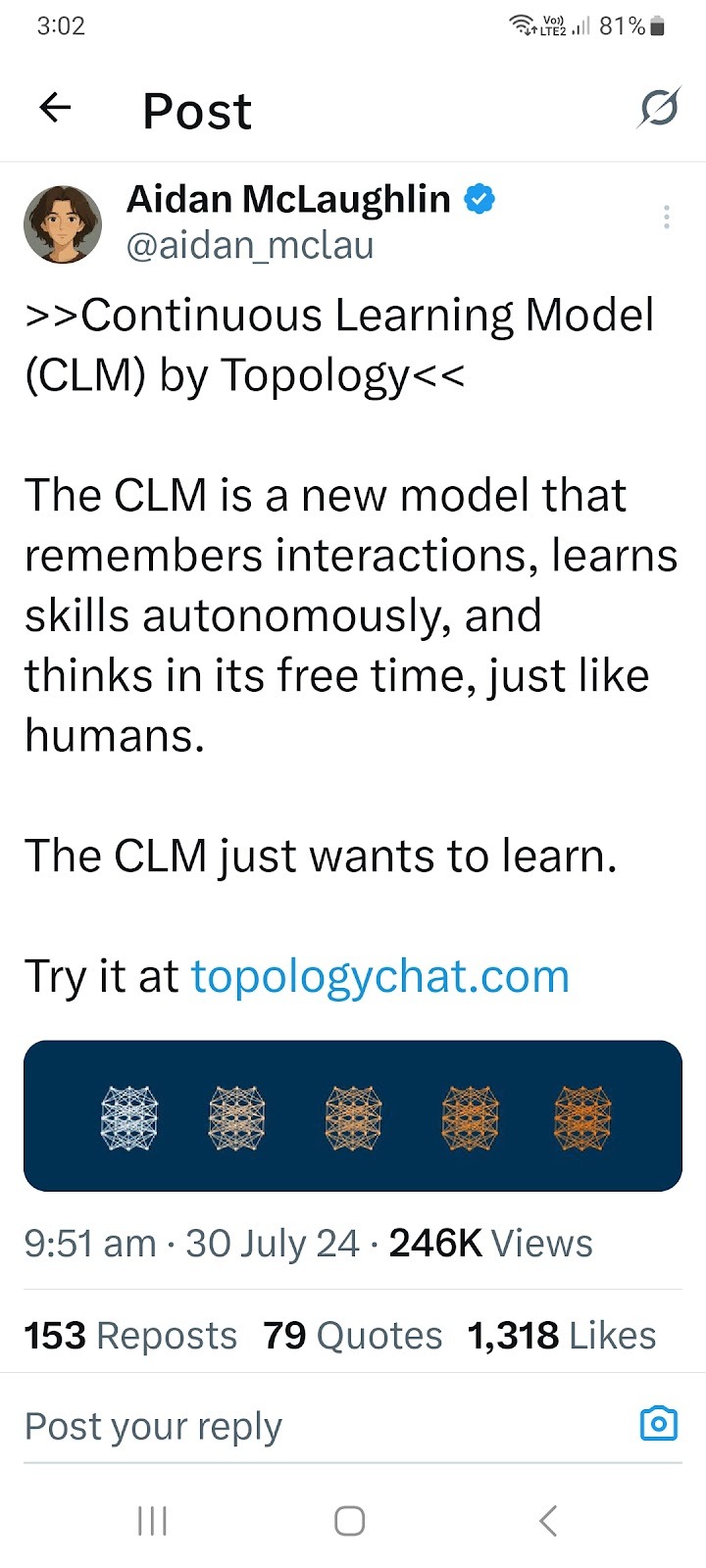 Continuous Learning - In July 2024 @Aiden_Mclau posted about a new model that can learn new skills in its free time, CLM by topology. Later he was hired by OpenAI and the Topology website is no-longer active. Googles AlphaEvolve which autonomously discovers and writes new computer code announced in May 2025 had been finding improvements for Google internally for over a year before that. And only now has it been available to some external users.