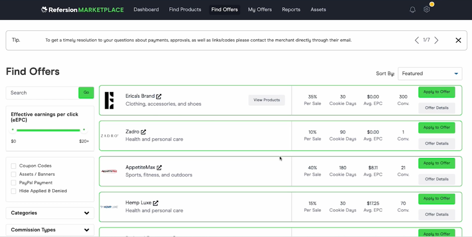• Good filtering for marketplace affiliates