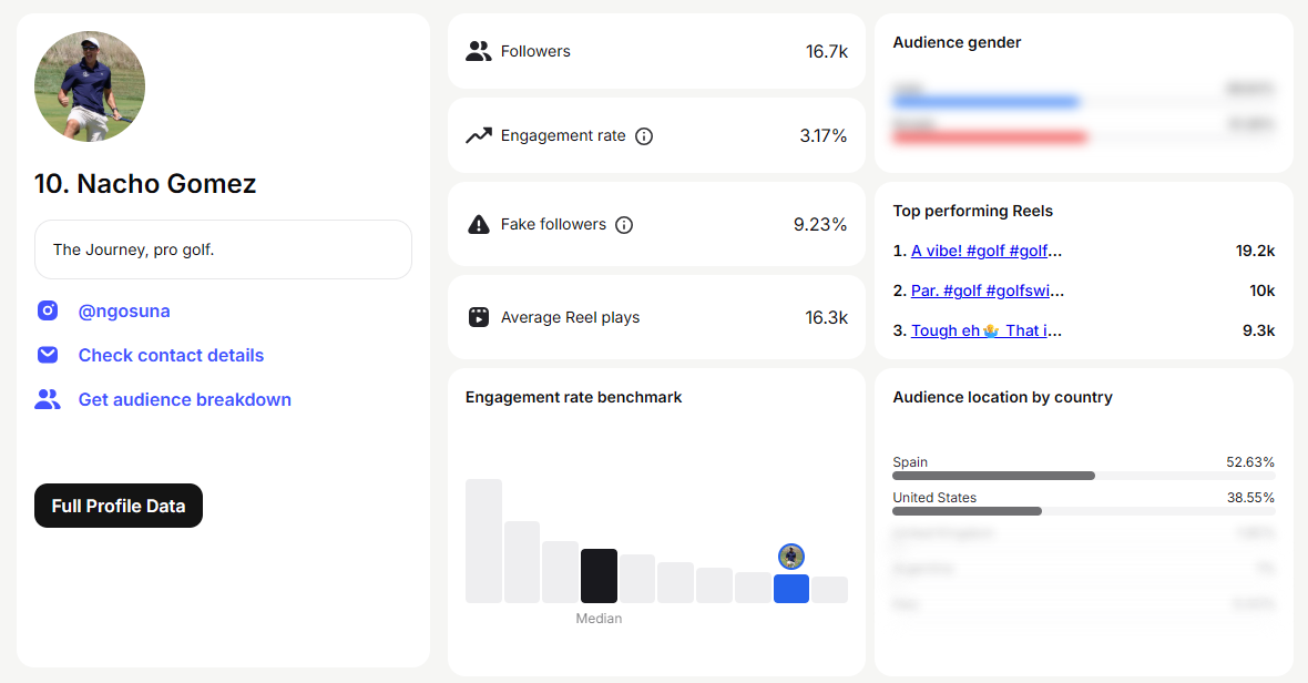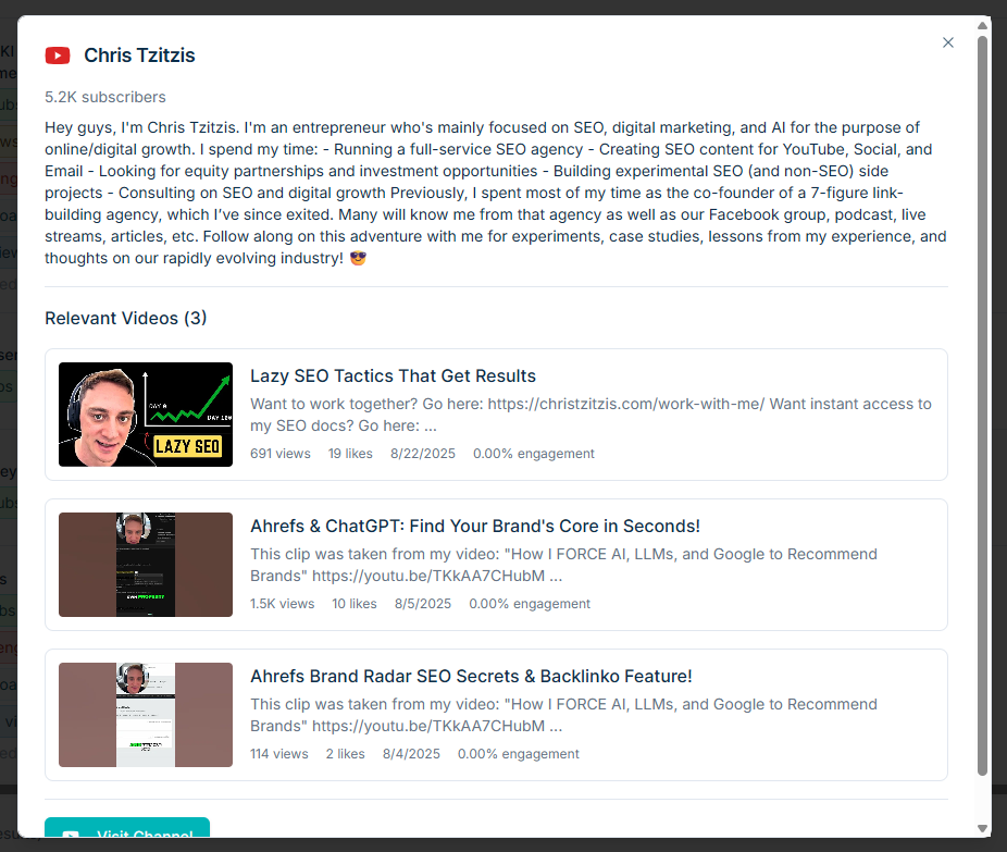 You can view all the stats you need to help make a decision (subscribers, views, engagement rate) without having to leave your dashboard.