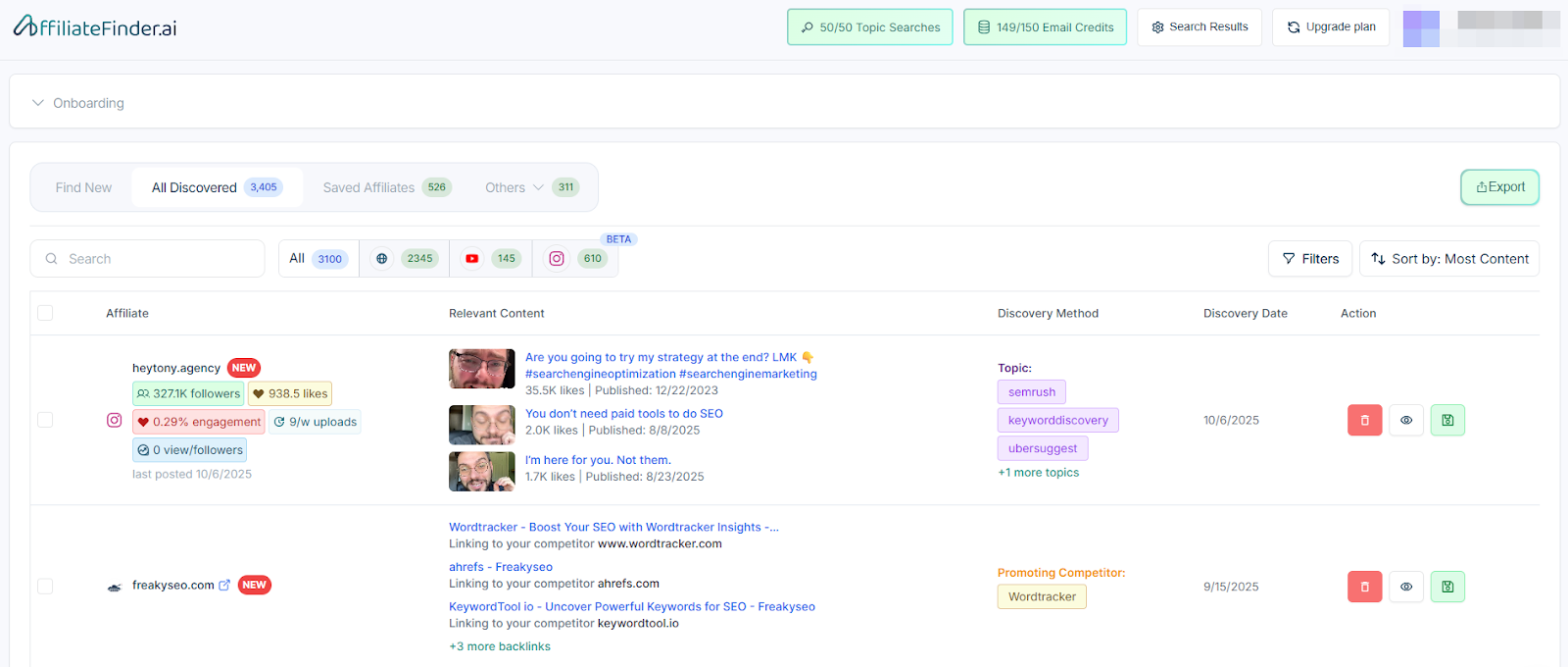 And the great thing is that it has AI-powered affiliate discovery built in, along with email enrichment.