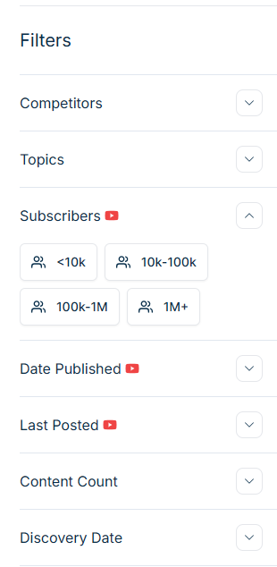 For example, if you want to work with nano-influencers with small but engaged audiences, you can filter results to show those with less than 10k subscribers.