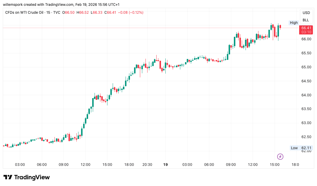 Analisten spreken van een geopolitieke risicopremie. Dat draait vooral om de Straat van Hormuz, een cruciale route waar grofweg een vijfde van de wereldwijde olielevering doorheen gaat. Iran zou de zeestraat kort hebben gesloten voor militaire oefeningen en kondigde ook nieuwe militaire activiteiten aan, terwijl de VS extra marineschepen in de regio heeft liggen. In Genève lopen gesprekken, maar volgens het Witte Huis zijn er nog flinke verschillen.