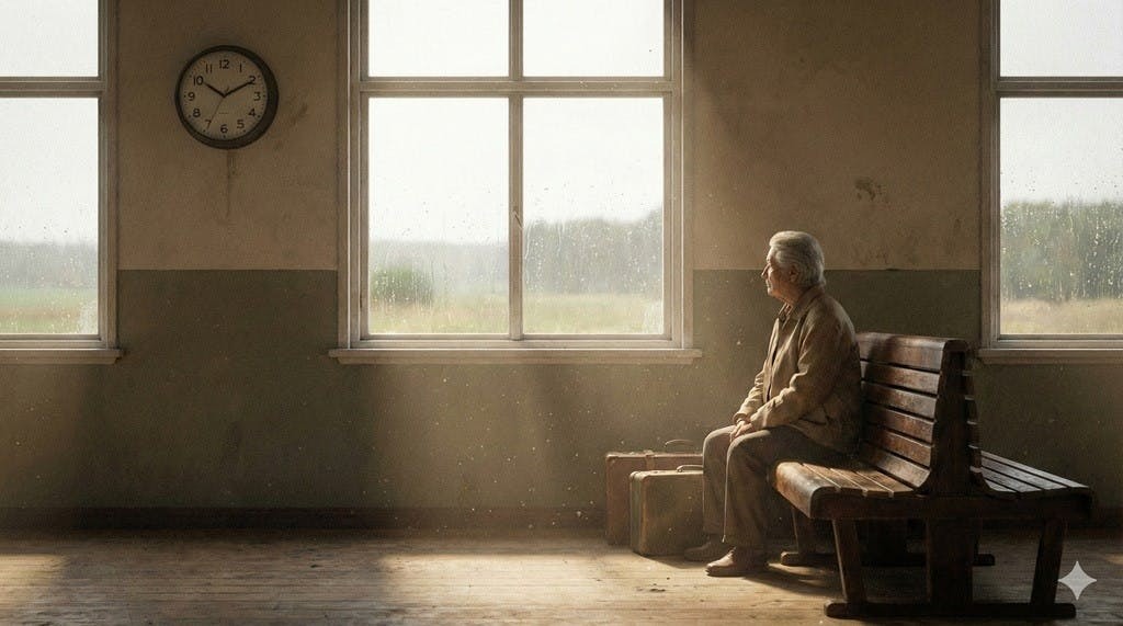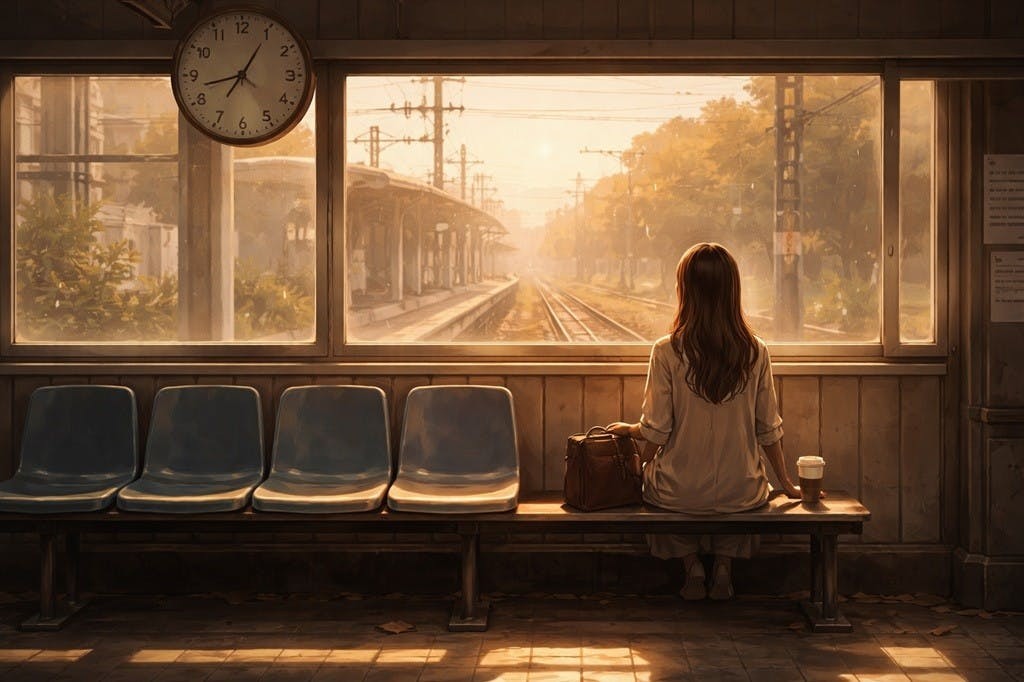 用畫面表現「等待的感覺」,場景不限,但整體氛圍需要傳達安靜、停滯與時間流逝的情緒。