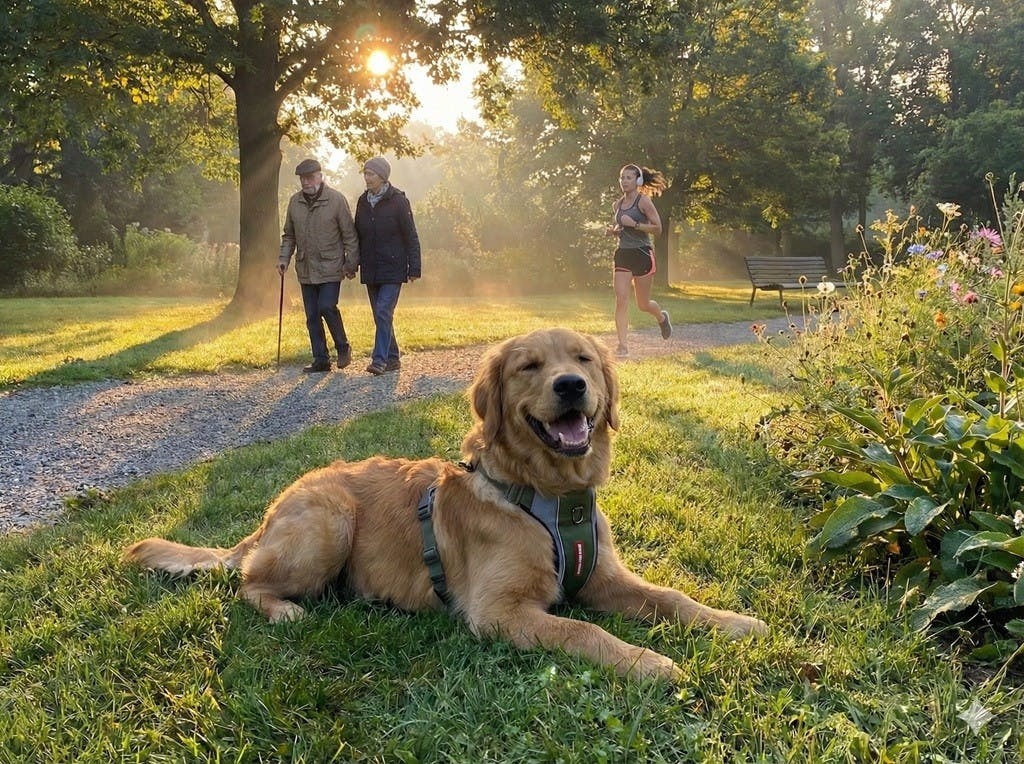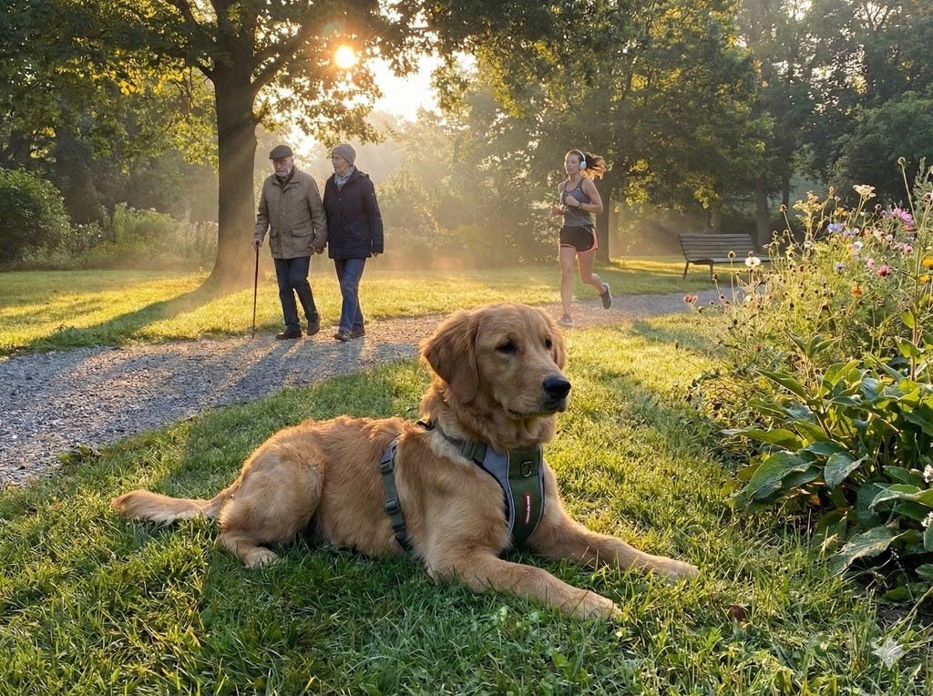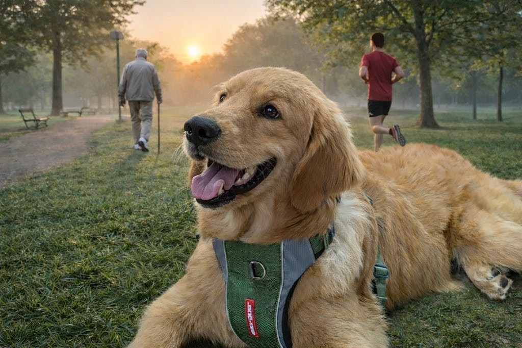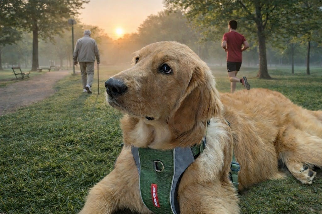 修改圖片,在旁邊路上新增加散步的老人和慢跑的年輕人。