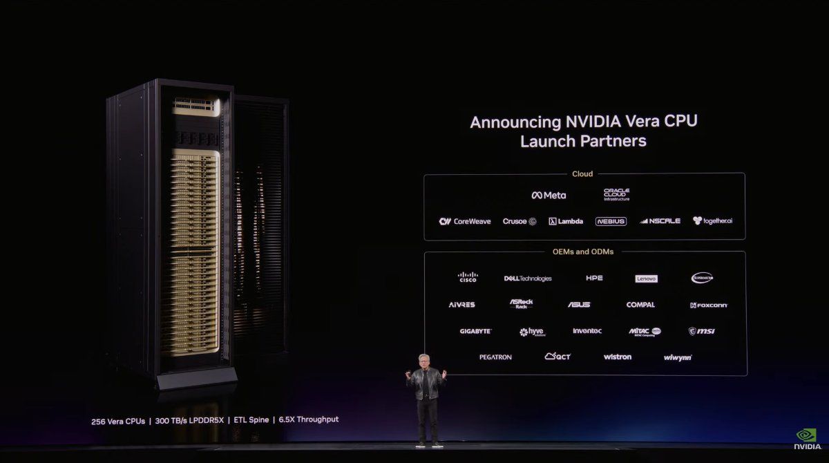 過往於NVIDIA的DGX系統,CPU是緊密與GPU相互結合的運算模組的一部分,然而隨著新世代Vera CPU推出,NVIDIA也宣布純CPU的Vera CPU模組,旨在以CPU執行驗證於GPU作為強化學習與智慧AI工作負載的結果。此外NVIDIA也宣布有多家雲服務商、系統整合夥伴將推出Vera CPU機架系統。