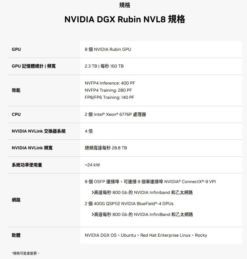 ▲Xeon 6處理器成為x86架構的DGX Rubin NVL8的Host CPU